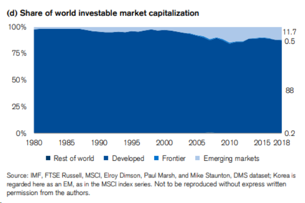 根據瑞士信貸全球年報中指出,這些國家占全世界40%的GDP,其人口則是占了高達68%,但是他們的資本市場市值僅占世界12%而已。