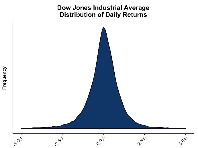 去年20180205,道瓊下跌了1175點(-4.6%),這是一個4.1標準偏差的事件,你知道這是一個機率非常小的發生機會,平均要214年才會發生一次