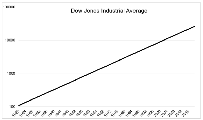 就像下圖的道瓊工業指數,以數學模型來說可以約略畫成這樣子成長曲線