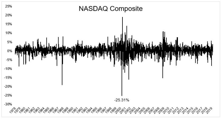 NASDAQ(那斯達克)指數通常被視為科技股的代表,我們來聊聊他的一段歷史。NASDAQ曾經有一段黑歷史,也就是史上最慘烈的一周;而在這一周來臨前的前五年,NASDAQ總共上漲多少百分比你知道嗎? 445%,年化報酬率40%啊!!!!!五年就賺了四倍半的資產,超瘋狂的!