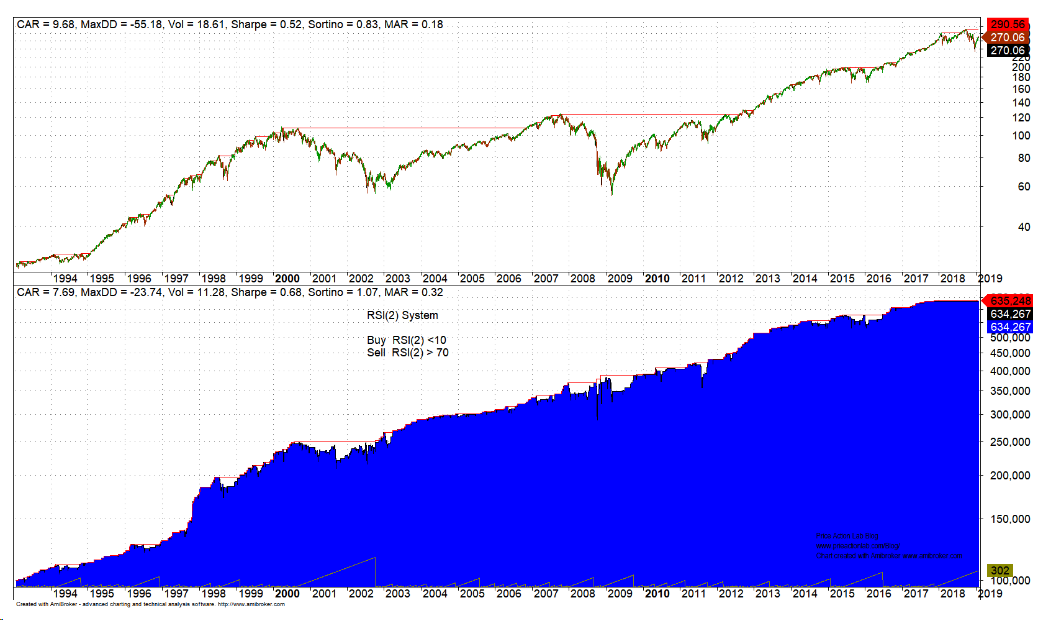 - 該策略為 RSI(2) < 10 買入,RSI(2) >70 賣出