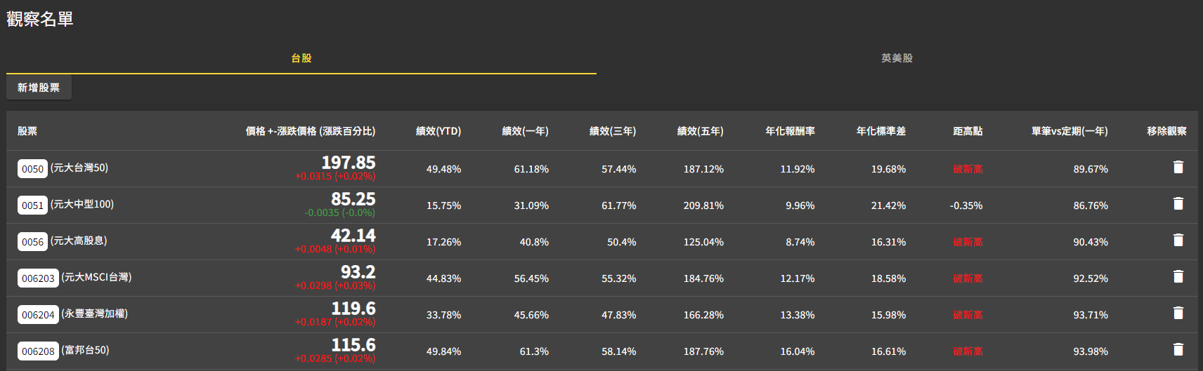 既然有了資料庫可以呈現,下一步當然就是建構使用者的台股/英美股觀察名單。