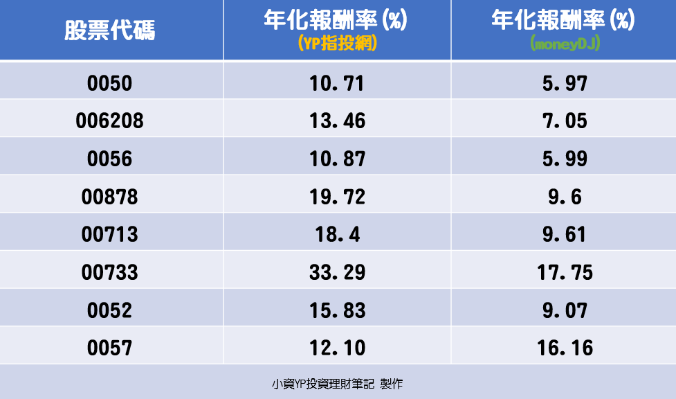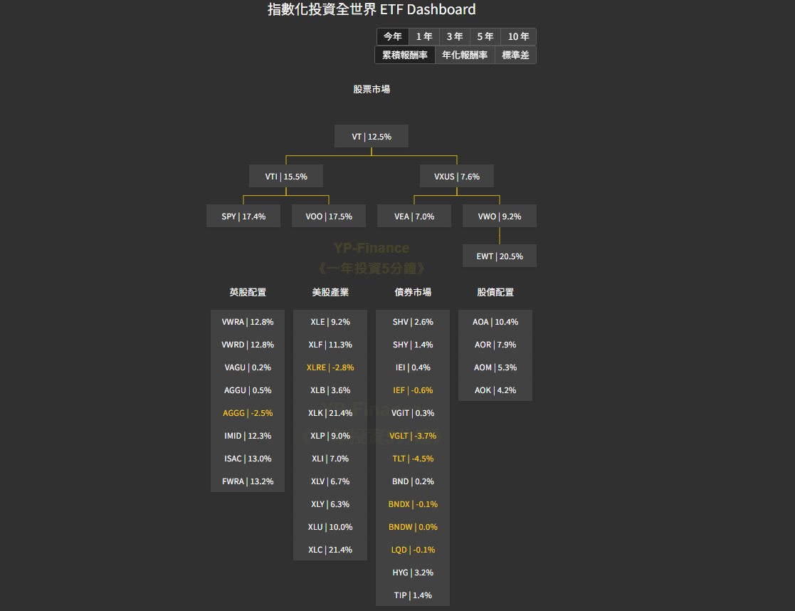 並且可以選擇不同的時間起點,以及三種數據呈現,包含累積報酬、年化報酬率以及標準差,這是你在其他地方看不到的統計。