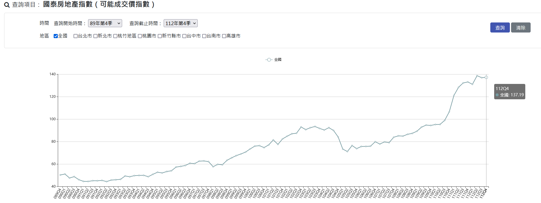 了解過往的房價走勢,可從內政部提供的住宅價格指數與國泰房地產指數得知。