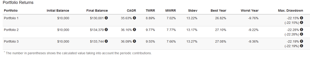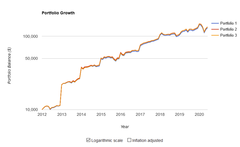 以上的portfolio從1-3分別是VT、VTI+VXUS、VTI+VEA+VWO
